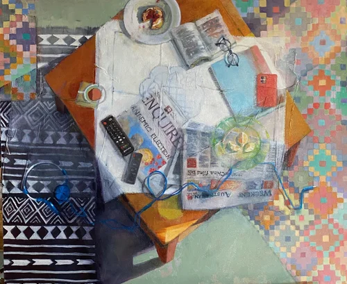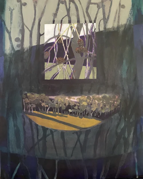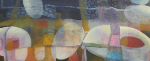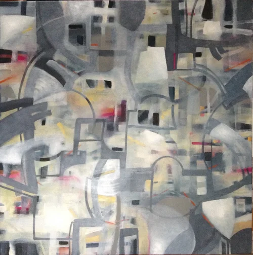 Abstraction or non representational art relies on the formal elements of colour, shape, line, texture etc . Ideas come from the natural world, the figure and objects in my environment. In addition I source material from feelings and perceptions of my social and emotional experiences. Often the final painting surprises me and I see in retrospect the impulse for the work.