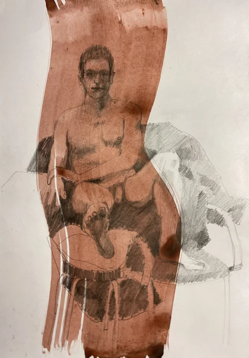 Mixed media, graphite pencil, pen, acrylic paint on paper, 30X 40 cm, 2022