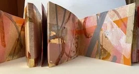 Concertina book, acrylic paint, ink, gold foil, collage, on Washi paper on Canson paper, 240 x 17 cm, 2024